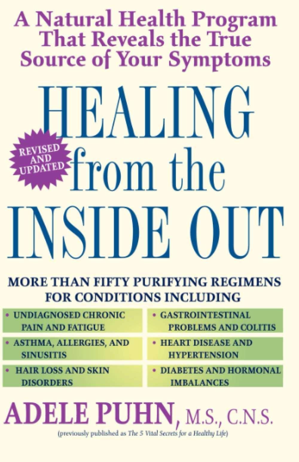 No doctor can ever understand your body as well as you. And from understanding comes the self-awareness and responsible self-care that produces long-lasting good health. To help you take charge of your body's well-being, clinical nutritionist Adele Puhn, author of the New York Times bestseller The 5-Day Miracle Diet, has written this comprehensive guide to the sources of--and remedies for--many, perhaps all, of your health problems. An abused digestive tract allows toxins and bacteria to leak through its weakened walls into the bloodstream and wreak havoc throughout the body. An overtaxed liver, unable to perform its vital filtering and metabolic functions, leaves the body toxic and vulnerable.Healing from the Inside Out tells you how to heal these conditions and repair the damage they have caused in all parts of the body--featuring more than fifty fully detailed and carefully structured preventive and rescue regimens--wholesome diets, appropriate potencies of vitamins, minerals, amino acids, herbal remedies, and more--all designed to heal and invigorate the body.- Gastro-intestinal tract: Crohn's disease, colitis, ulcers, gallbladder disease, hiatal hernia, irritable bowl syndrome- Heart and circulation: angina, arrhythmia, high cholesterol, hypertension- Muscles, joints, and skeleton: chronic back pain, fibromyalgia, osteoporosis, osteoarthritis, rheumatoid arthritis- Skin and hair: dandruff, hair loss, psoriasis- Endocrine system: hypoglycemia, hyperthyroidism, kidney stones, diabetes- Emotions: depression, chronic fatigue syndrome, stress, hyperactivity- Breathing: asthma, chronic bronchitis, sinusitisAnd much more, including case histories and a guide to complementary heath organizations.